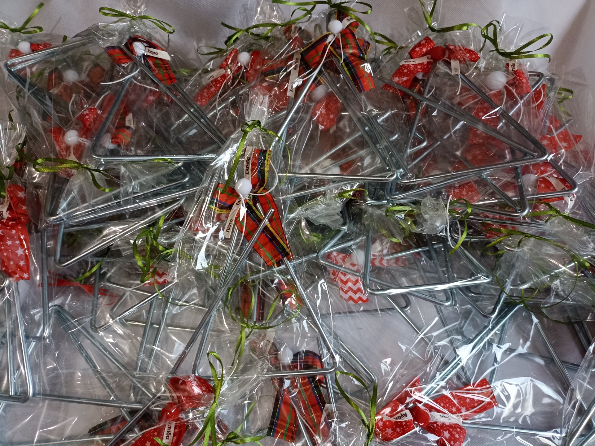 Τριγωνάκι για τα κάλαντα διακοσμημένο με κορδέλες με το όνομα του παιδιού