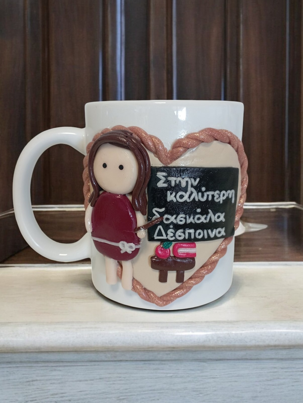 Χειροποίητη τρισδιάστατη κούπα 360ml διακοσμημένη με πολυμερικό πηλό άριστης ποιότητας.