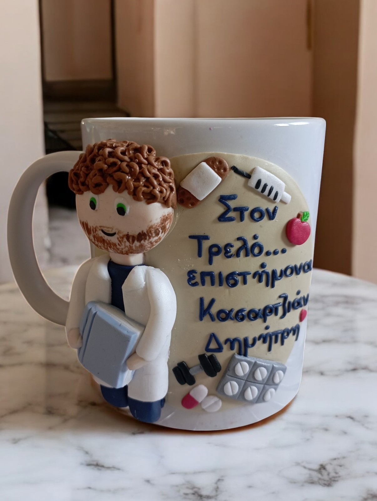 Χειροποίητη τρισδιάστατη κούπα 360ml διακοσμημένη με πολυμερικό πηλό άριστης ποιότητας.