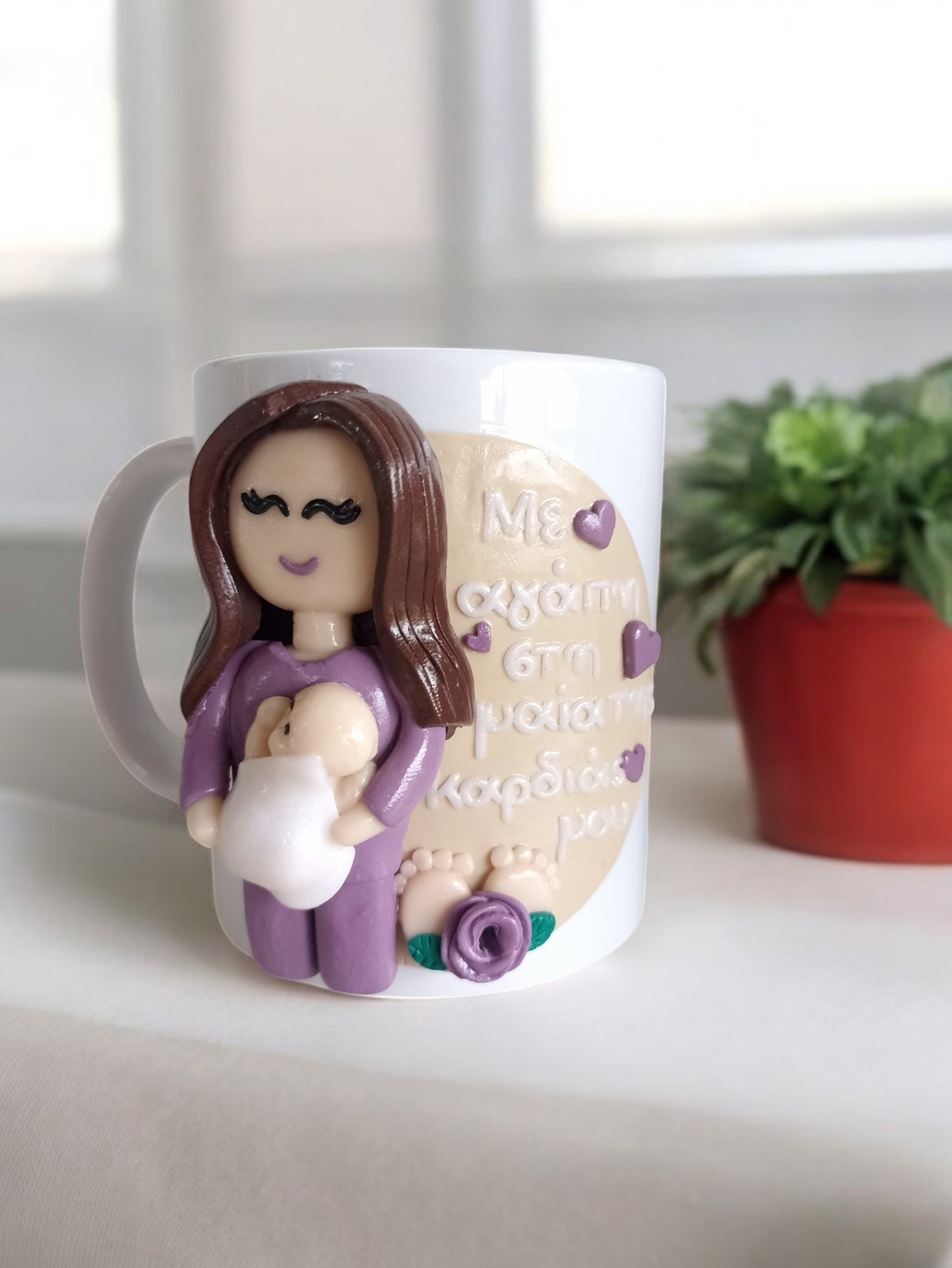 Χειροποίητη τρισδιάστατη κούπα 360ml διακοσμημένη με πολυμερικό πηλό άριστης ποιότητας.
