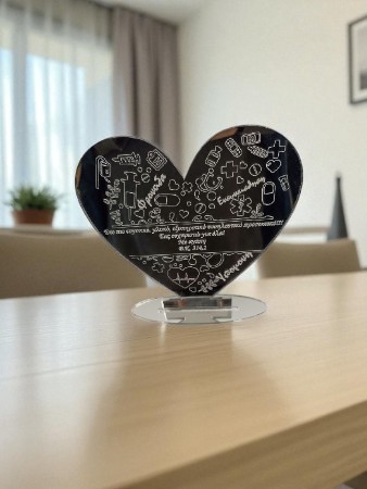 Διακοσμητικό σταντ φτιαγμένο από plexiglass ασημί καθρέπτη και με χαραγμένη την αφιέρωση της επιλογής σας.