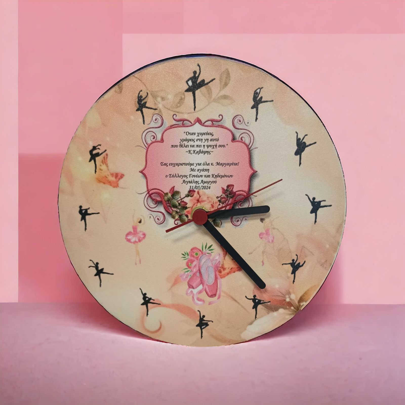 Ξύλινο ρολόι τοίχου 20εκ για την καλύτερη δασκάλα χορού.