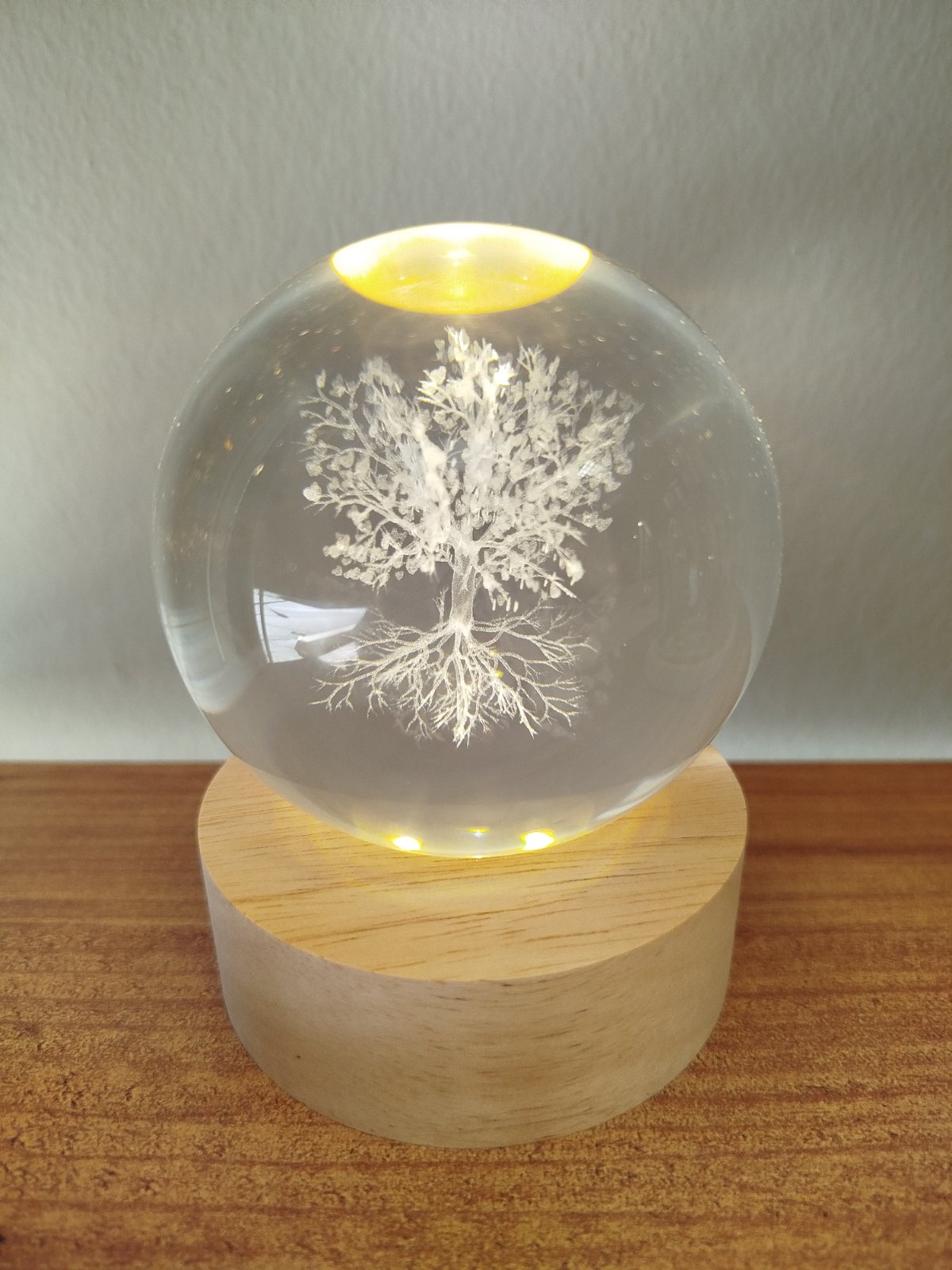 Ένα εντυπωσιακό διακοσμητικό με γυάλινη σφαίρα που φιλοξενεί τη λεπτομερή χάραξη του Δέντρου της Ζωής, συμβόλου δύναμης, γνώσης και ανανέωσης.