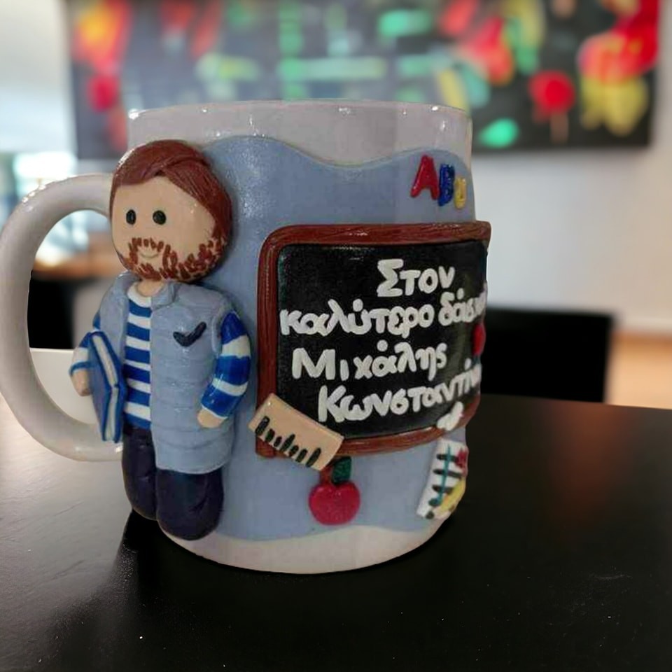 Χειροποίητη τρισδιάστατη κούπα 360ml διακοσμημένη με πολυμερικό πηλό άριστης ποιότητας.
