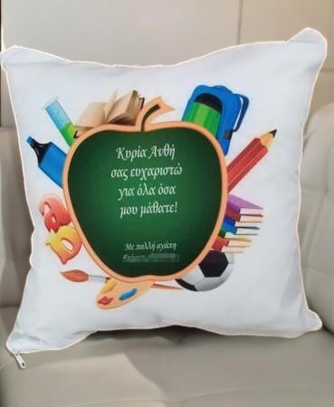 Μαξιλάρι με το τύπωμα και την αφιέρωση της επιλογής σας. Διατίθεται σε δύο διαστάσεις.