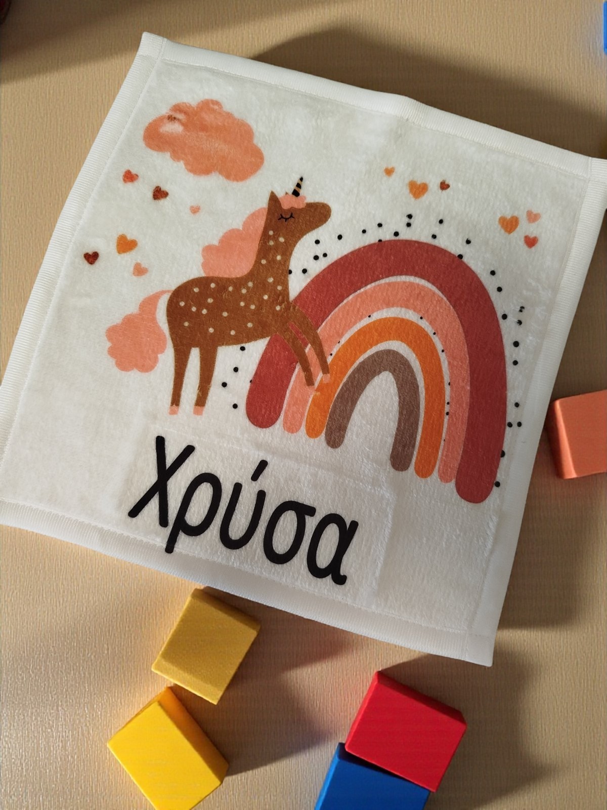 Πετσέτα νηπιαγωγείου με όνομα τετράγωνη