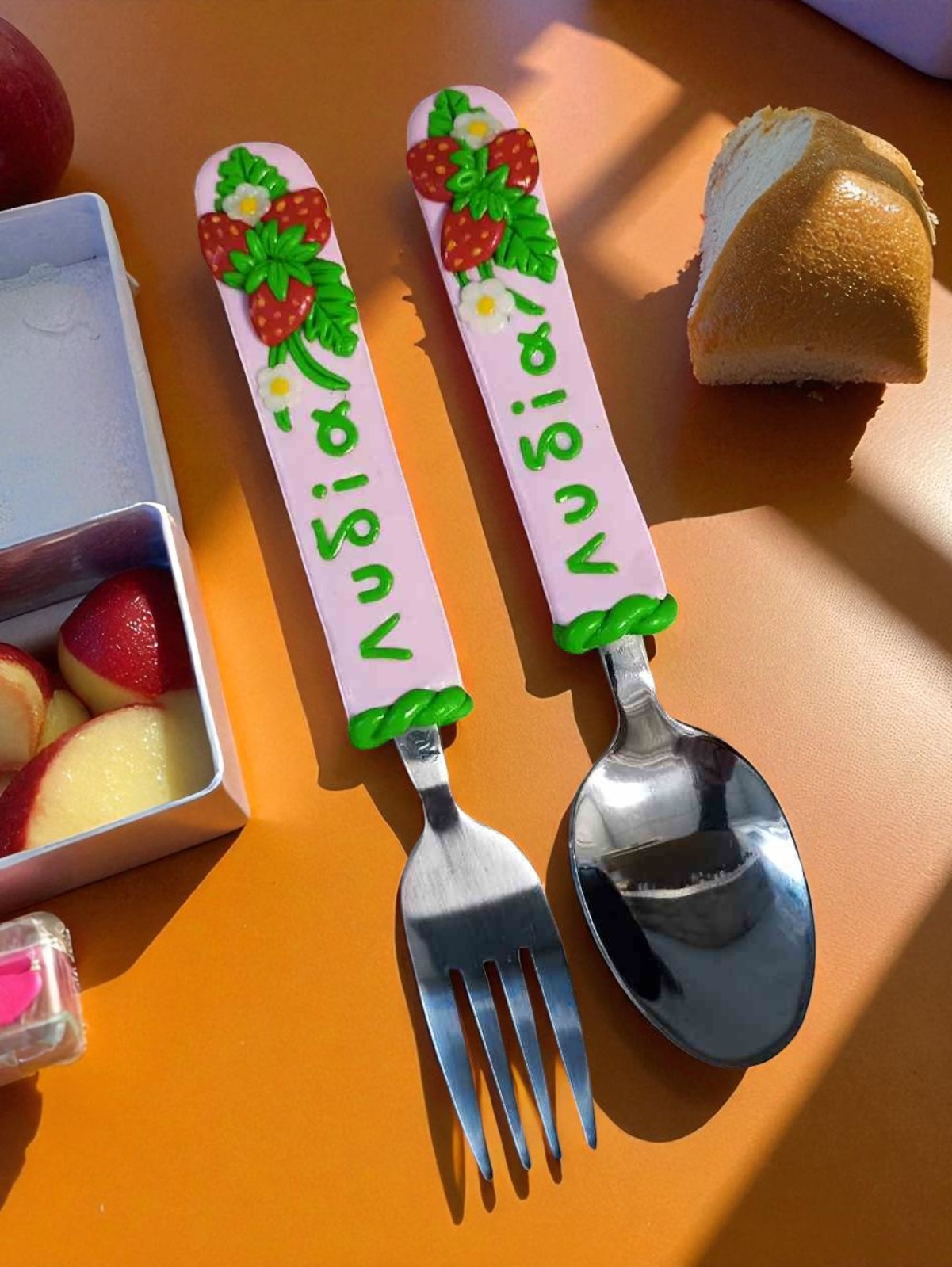 Χειροποίητο σετ κουτάλι και πιρούνι, διακοσμημένα με πολυμερικό πηλό άριστης ποιότητας.