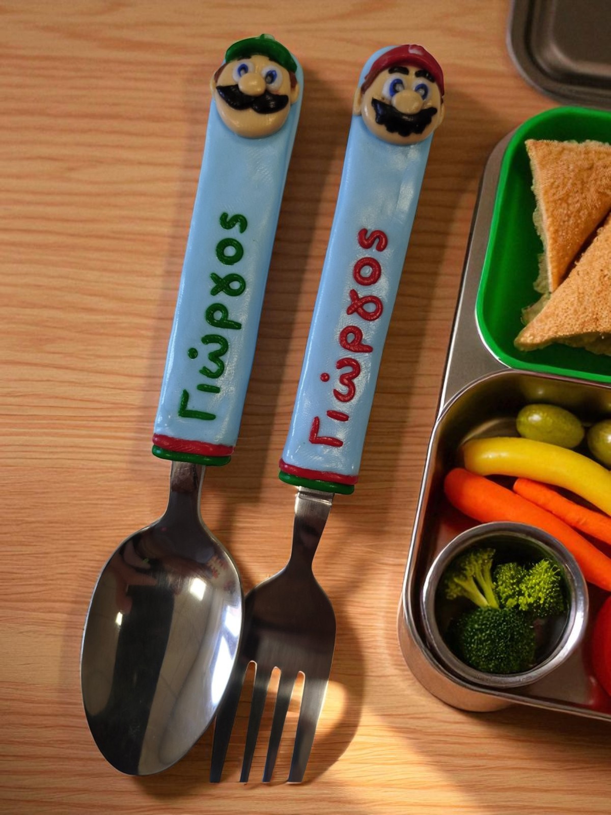 Χειροποίητο σετ κουτάλι και πιρούνι, διακοσμημένα με πολυμερικό πηλό άριστης ποιότητας.
