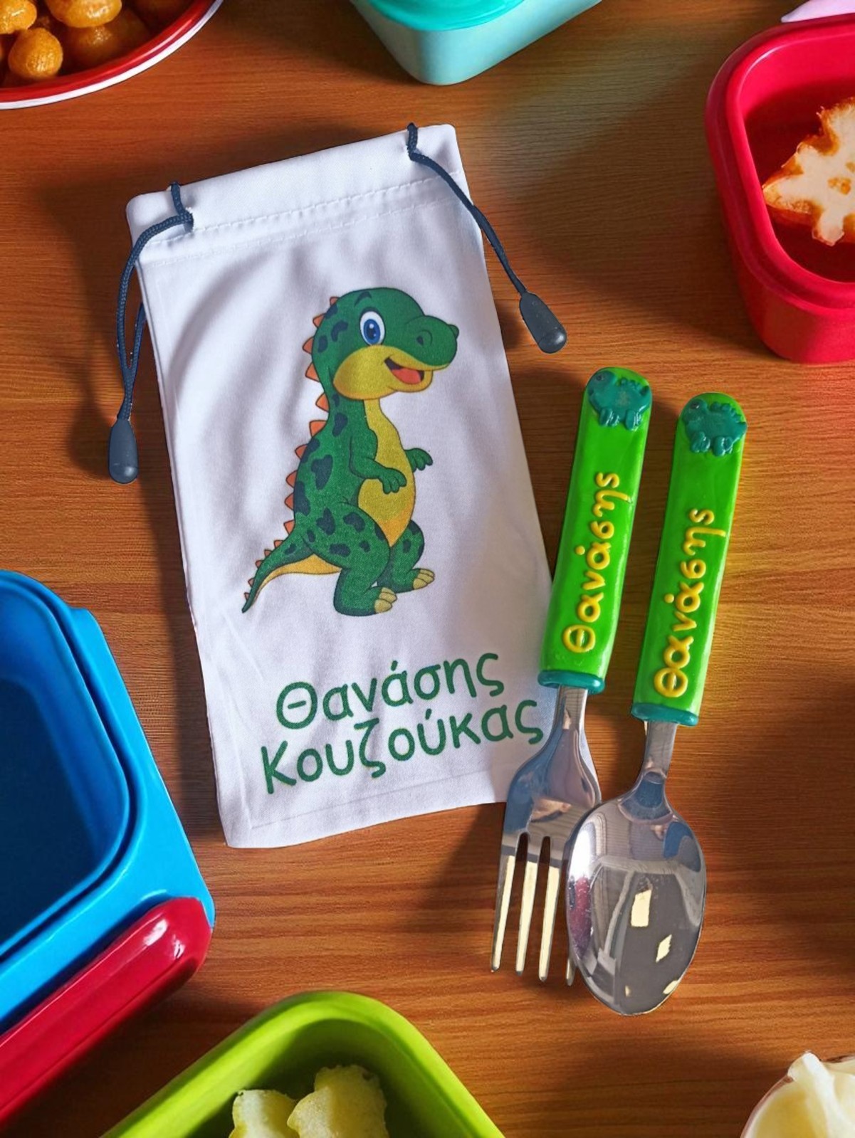 1. Θήκη υφασμάτινη για κουταλοπίρουνο ή για οποιαδήποτε άλλη χρήση με το τύπωμα και το όνομα της επιλογής σας. Στο επάνω μέρος κλείνει τραβώντας το μαύρο κορδόνι.