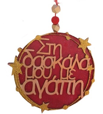 Κρεμαστό στολίδι από ξύλο εξ ολοκλήρου χειροποίητο διακοσμημένο με γκλίτερ και χάντρες.