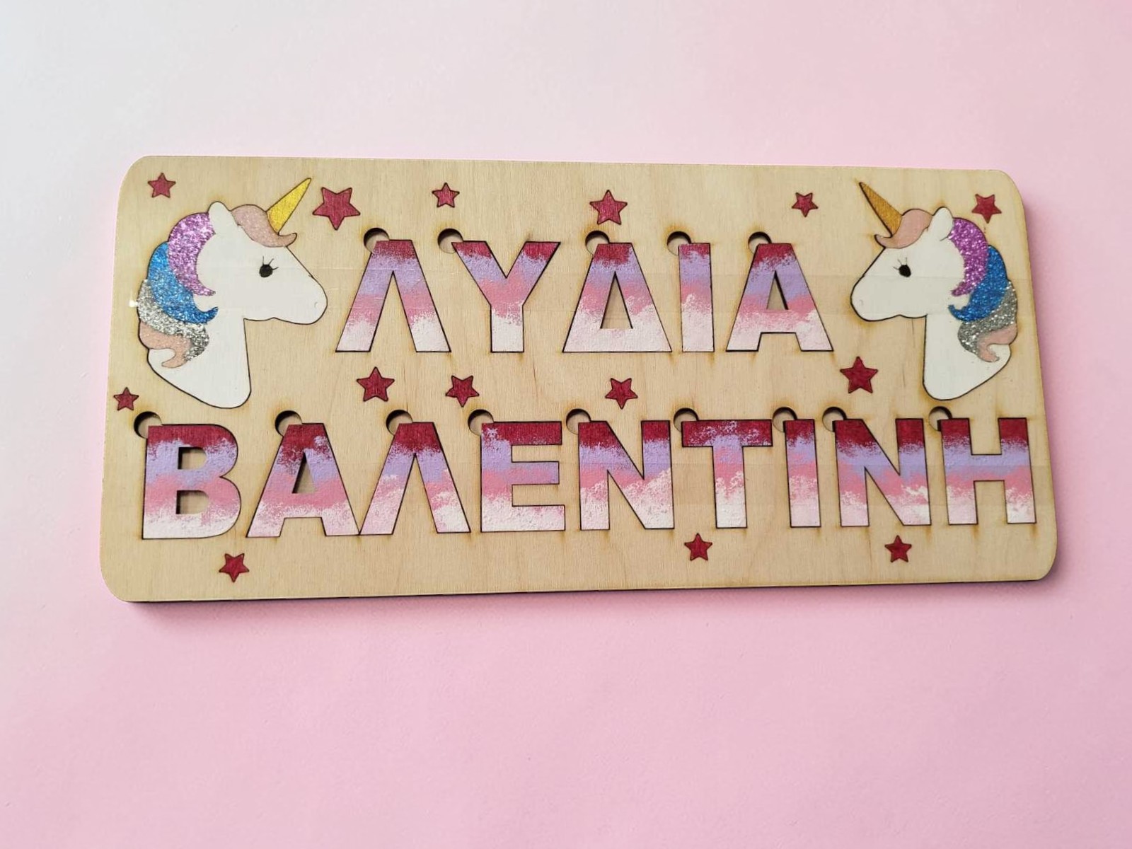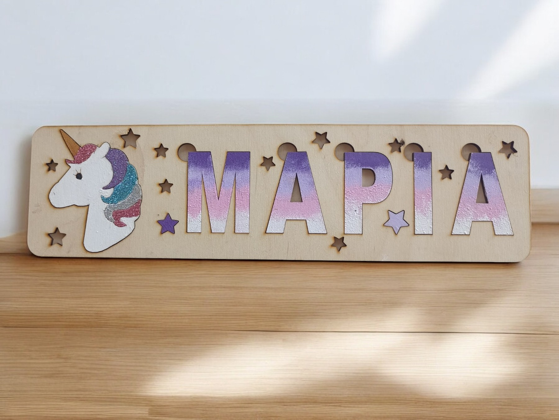 Το προσωποποιημένο εκπαιδευτικό ξύλινο Μοντεσσόρι Παζλ ενισχύει την αντιληπτική ικανότητα του παιδιού σας και το βοηθάει να αναπτύξει με τον καλύτερο δυνατό τρόπο τις αισθήσεις του. Πρόκειται για ένα παιχνίδι στο οποίο το παιδί θα ψάχνει να εντοπίσει με την αφή ποιο γράμμα τοποθετείται στη σωστή θέση ανακαλώντας παράλληλα την μνήμη του. Τα κομμάτια από τα οποία θα αποτελείται θα είναι τα γράμματα του ονόματος του παιδιού σας. Με τον πιο διασκεδαστικό τρόπο θα μάθει και πώς ακριβώς γράφεται το όνομα του.